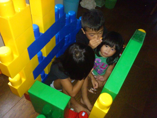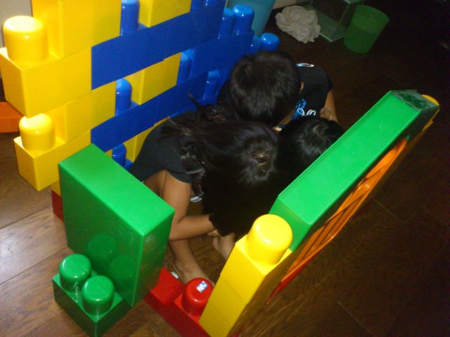 うちのチビ達はというと、台風慣れしてるのか意外にもあんまりビビる様子もなく、ブロックで台風に負けない丈夫な家を作るんだ~と言って3人できつそうに中に入って遊んでました。