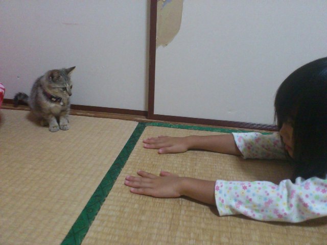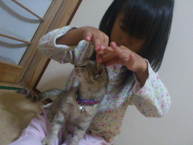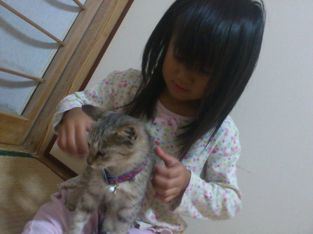 そーっと出してやったら最初のうちはキョドってはいたものの、しばらく頭とか喉をなでたり遊んであげたりしてたらいつの間にかまず自分にだけは心を許したみたいで、あの猫特有の甘えたゴロゴロ音を出しながら頭をこすりつけてきたり指をじゃれてかんできたり、早くも後ろをついてくるようになりました。
