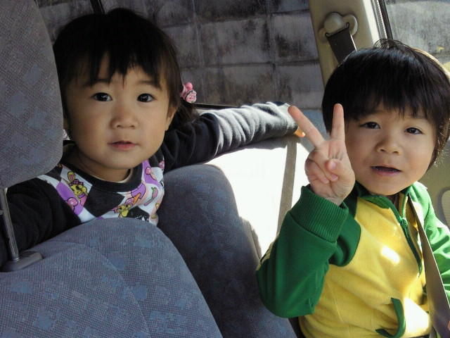 しばらくそんな感じで遊んでいると、さすがに走りまわってはしゃぎまくったチビ達は飽きてきたのか、「ドライブ行こうかぁ」と。