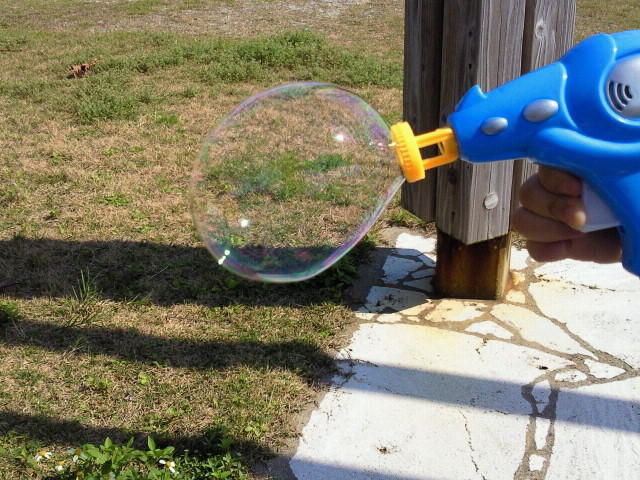 このシャボン玉(100均のだけど)、けっこうおもしろかった。