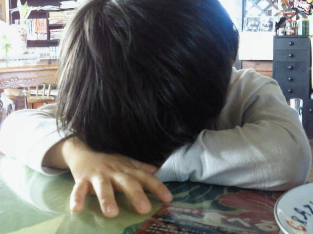 最初はおいしそうなアイスに喜んでいたものの、かいりはやっぱりアイスは食べない!と言って勝手にお店の冷蔵庫を開けたりウロチョロ歩き回ってジッとしてなかったので、他のお客さんの迷惑になるので怒ったら、疲れもあったからかふてくされてすねてしまいました…。