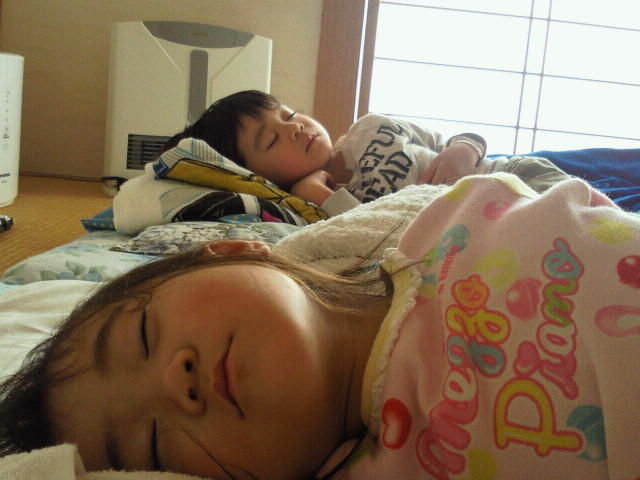 そんな感じで帰ったんだけど、帰って落ち着いたらかいりとちゅらはやっぱりコテっと寝てしまいました。