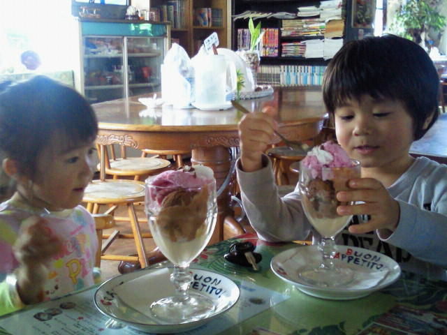 かいりも店内には興味があるものばっかりだから仕方ないけど、ちゃんと座っておとなしく食べれるようになるにはもうしばらくかかりそうだね…。