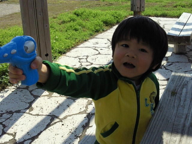 みきはちょっと体調が悪くて行けなかったから残念だったけど、まずはおにぎりとかお菓子とか鉄砲型のシャボン玉を買ってさっそく公園へ!