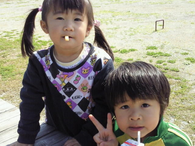 かいりもちゅらもかけっこが好きみたいで、広場を一周しては何かを食べ、また一周しては何かを食べ、またまた一周してはジュースを飲み、ってな感じで、かけっこしながら食べ→食べ→飲みのサイクルをしばらくリピートしてました。