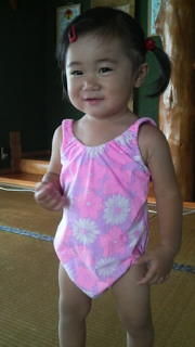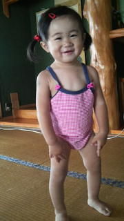 という事で、ちゅらには明日の水着をさっそく着させてみました・・・。