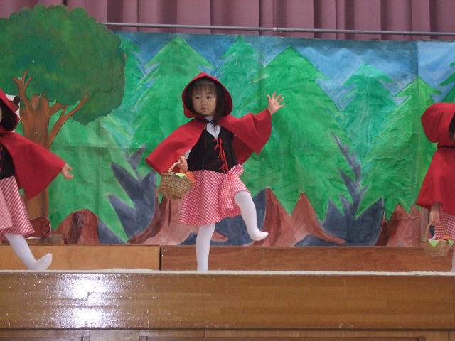 で、ちなみに続きでさっきのちゅらの「赤ずきんちゃん」だけど、みきもちゅらくらいの頃、赤ずきんの劇をやったらしいです。