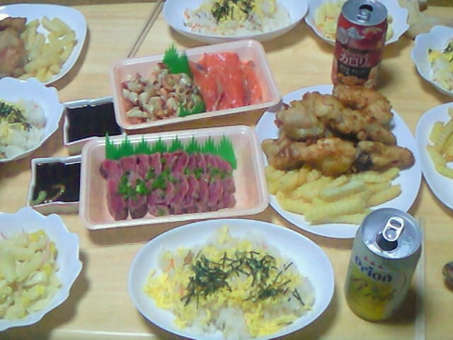 ちらし寿司に子供達が大好きなから揚げやポテト、新鮮な刺身や貝類、そして今ながの家で静かなブームの牛刺し…。