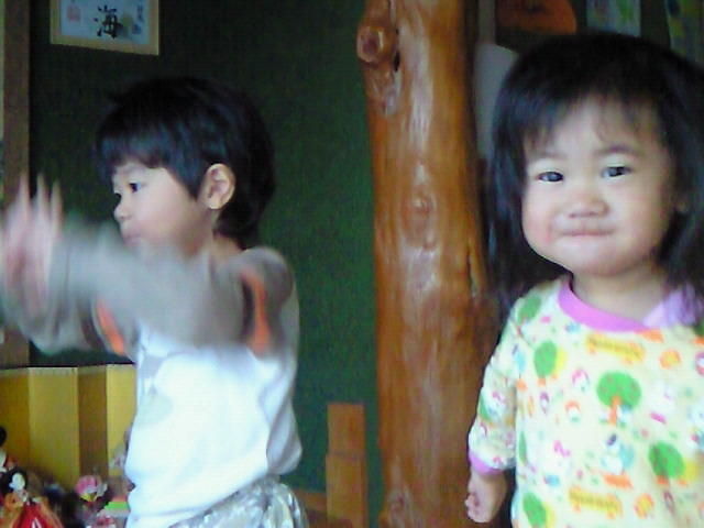 そんなかいりを見てるちゅらも真似して「あっち行って!」などと言うようになってきました。