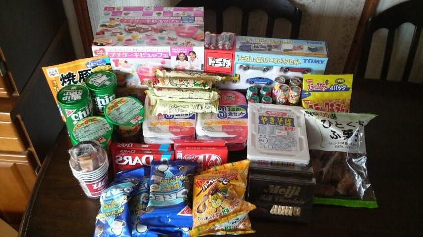 ところで先日横浜のみきの実家のお父さん・お母さんから、食料品やチビ達におもちゃやお菓子など、本当にたくさんの物を郵送で送っていただきました。
