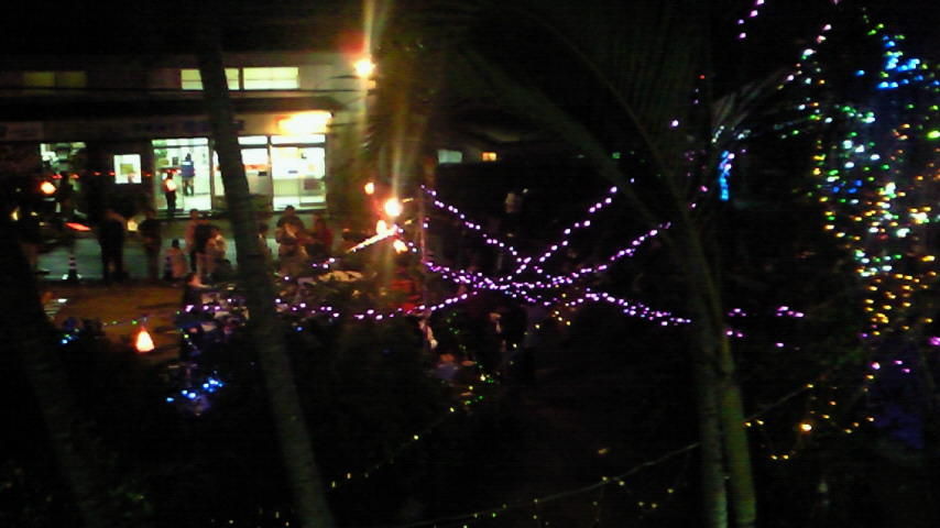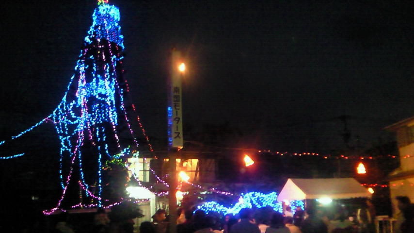 これ、与論の茶花中央通りのクリスマスイルミネーションで、今日その点灯式でした。