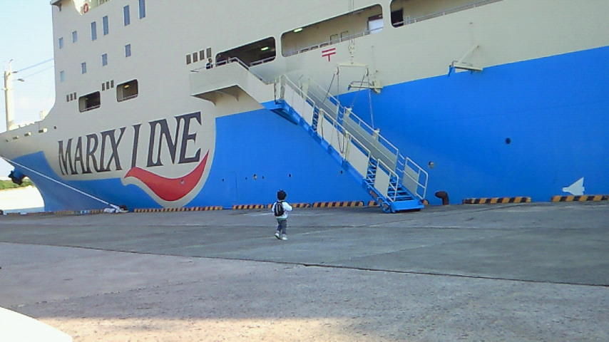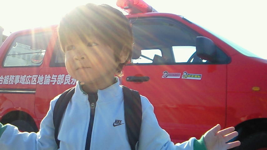 船から下りたら車がとまってるところに小さめの消防車があり、「ウーウー!ウーウー!」と大きな声で叫んで超興奮して走っていきました。