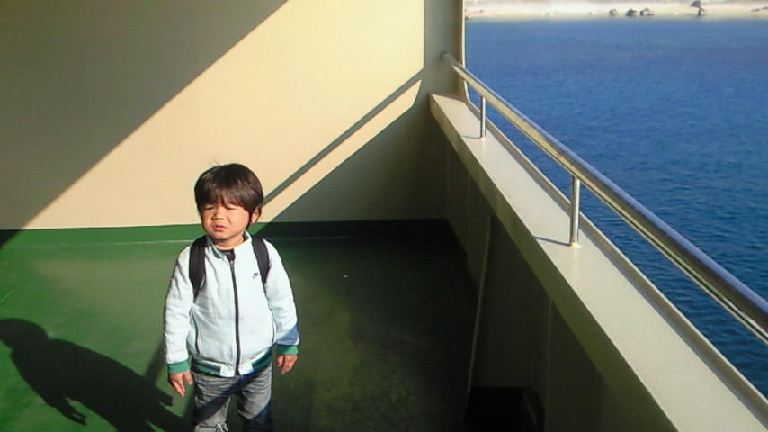 甲板にも出たら、岸が外にあるからかちょっと驚いた様子を見せてました。