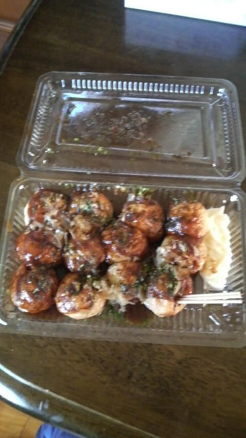 そんなこんなで、お腹もすいてきたところでなぜかみきと「たこ焼き食いてぇ!」という突発的な衝動にかられ、久しぶりにたこ焼きロッキーのたこ焼きをテイクアウトしました。