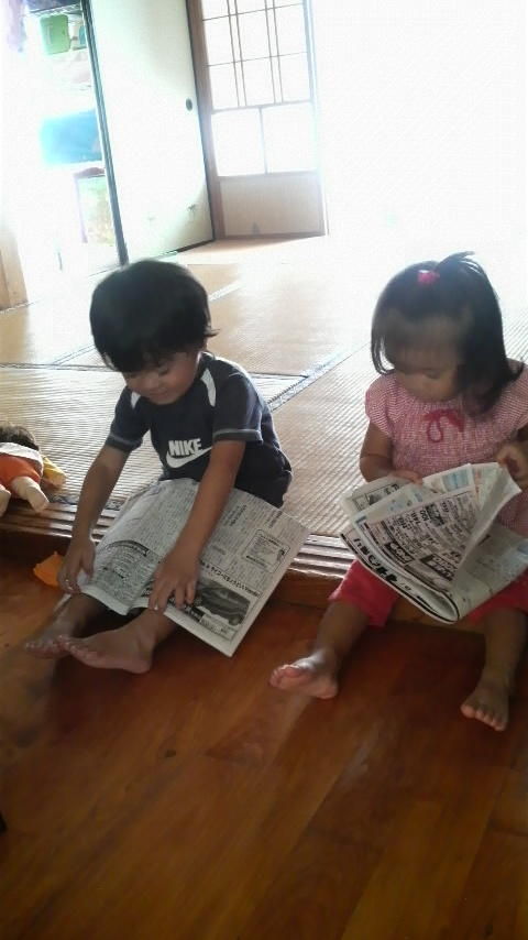 かいりは最新ニュースを、ちゅらはスーパーの広告が気になる様子です・・・。