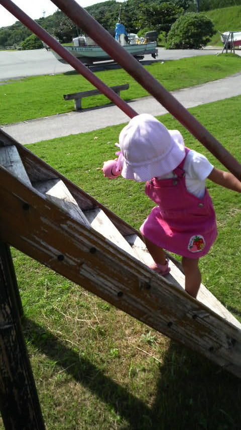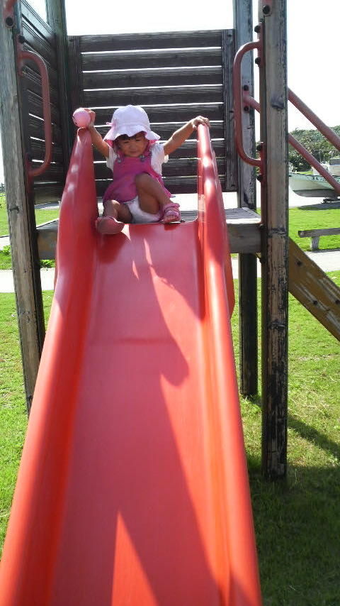 それにしてもこわがりのちゅらが、一人で階段をのぼり、一人ですべり台をすべってたのにはビックリ。
