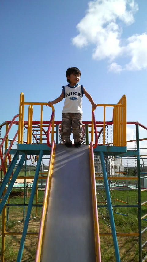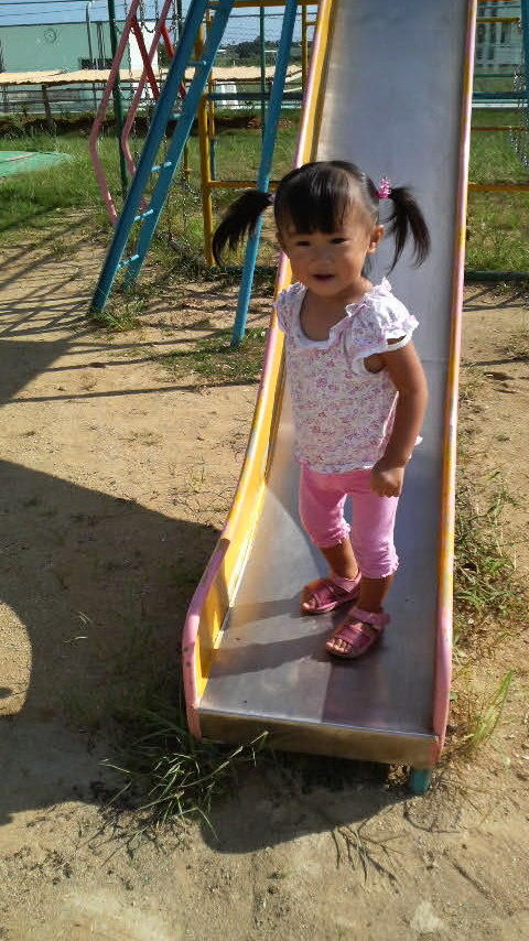 かいりとちゅらは、多分学校という意識はないらしく、すべり台やジャングルジムに夢中・・・。