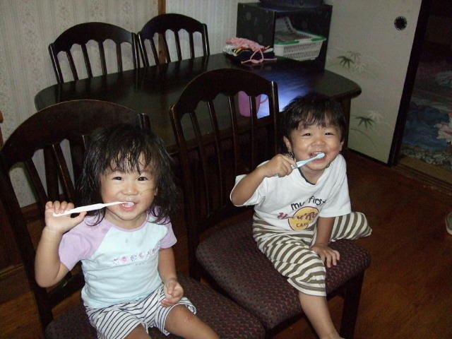 ちなみに最近2人とも歯磨きは自分でやって、その後仕上げで磨いてあげるんだけど、そんなチビ達、歯磨きのことを「はみき~!」と言います。