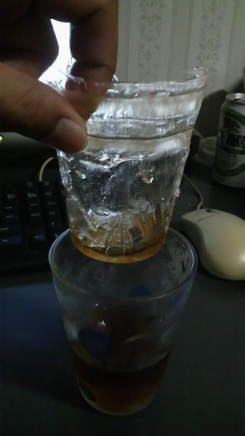 最近コップに入れたお茶を冷凍庫に数十分入れて、半氷りの状態で飲むのがながの家のブーム。