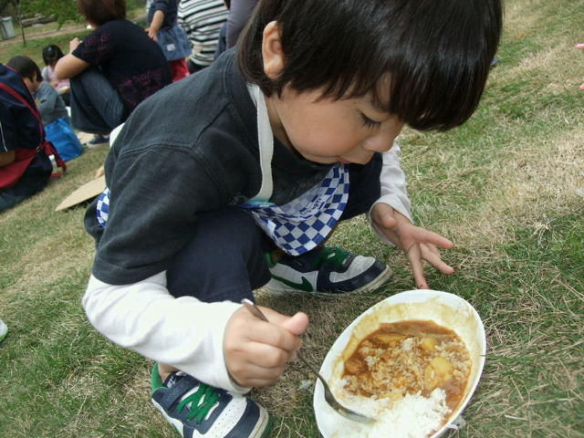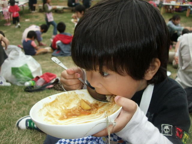そんなこんなで他の子と先生達が料理や準備を頑張ってくれて、いよいよカレーが出来上がりました。