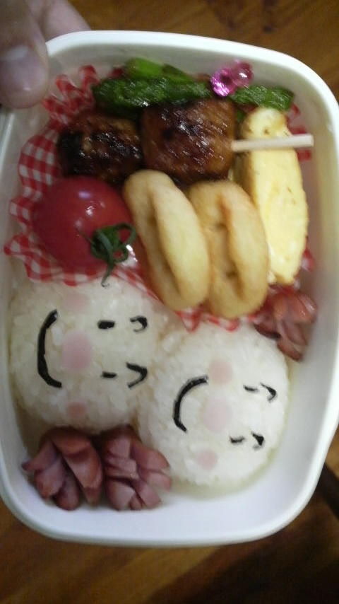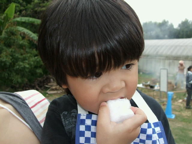 おいしそうに食べてますけど、これ、おにぎりではありません…。