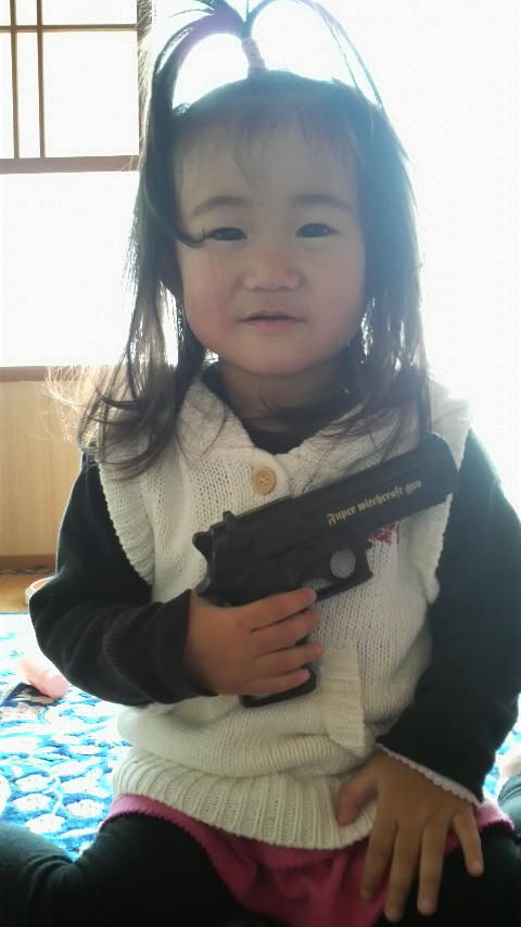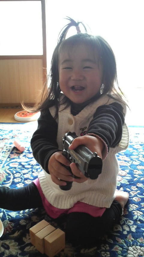 しかもこの前おもちゃの鉄砲買ってやったら大喜びで、家で「バンバンバンバン」言ってます。