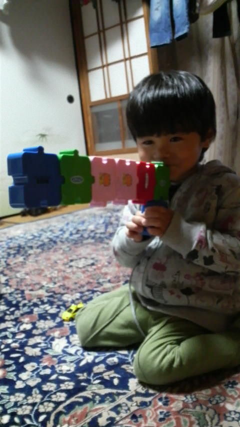 最近かいりがどっから覚えてきたのか分からないけど、ブロックを鉄砲のようにして撃ってくるマネをします。