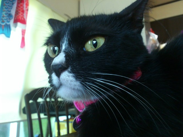 これらの写真は昼間に撮ったから目がちょっと鋭いけど、夜は黒目が大きくてもっとかわいい顔してるんだけどね。