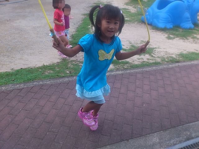最近保育園のちゅらのクラスでいろんななわとびの練習をしているみたいで、いろいろと出来るようになったのがすごい嬉しかったらしく、「父ちゃん保育園に絶対見にきて!」と言うので昨日お迎えの時見てきました。。。