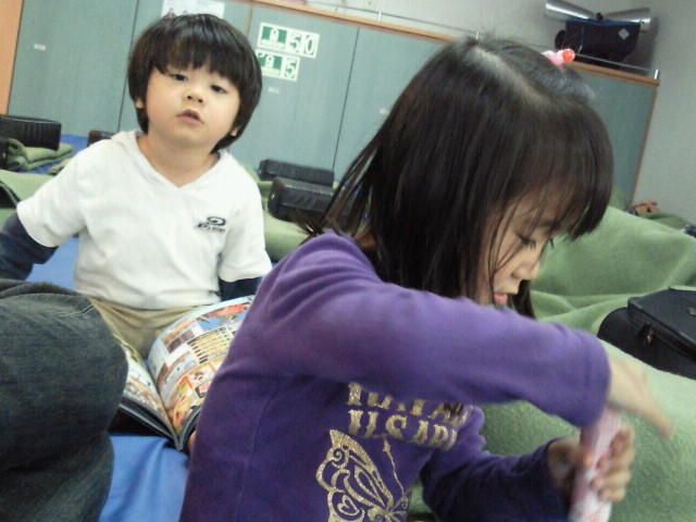 買ってた本を見せたりしてごまかしながら時間をつぶしてたんだけど、だんだん飽きてきたらしいからチビ達を連れて船内を探検。