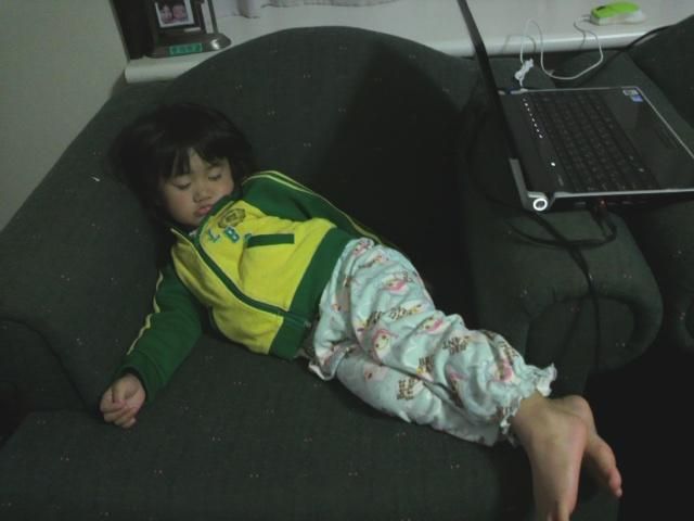 こんなとこで寝て風邪でもひかれたら大変なので、すぐに布団へ移動させたんだけど、明日の沖縄が楽しみではしゃぎまわってたせいで疲れて寝てしまったらしい…。