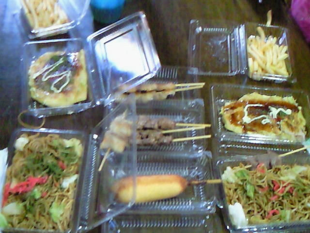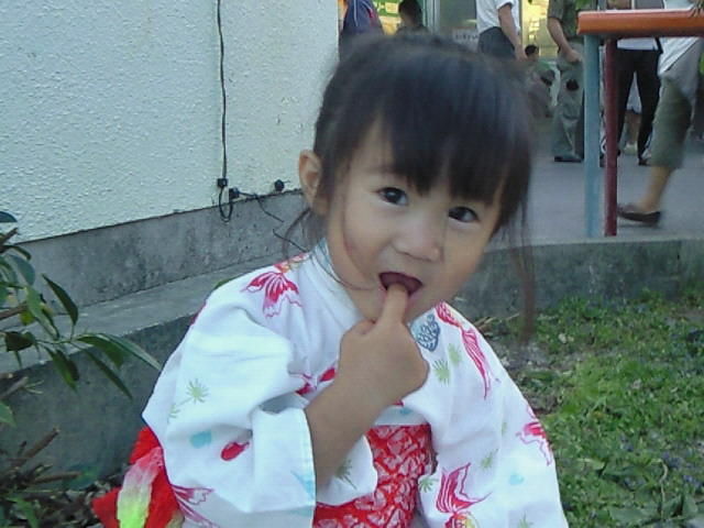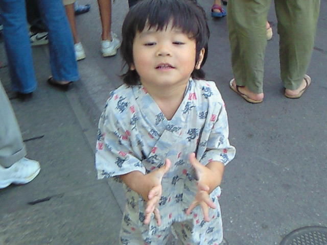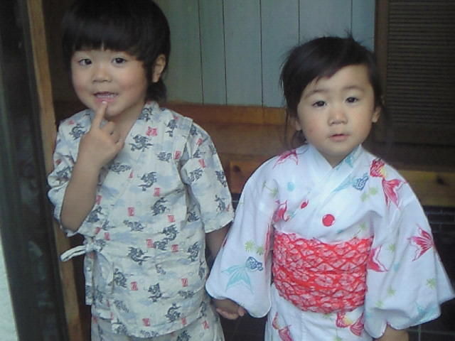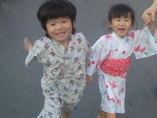 みきが仕事から帰ってきたら、子供達に甚平を着せ、とりあえず焼き鳥とかお好み焼きとか買いに行ってきました。