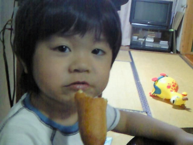 かいりもちゅらも祭好きだからまだ帰りたくなさそうだったけど、お腹すいてたので帰って着替えさせてさっそく夕ご飯に。