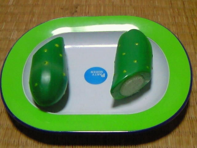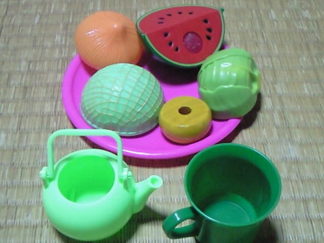 魚とかハンバーグとか卵とか、数ある中からたまねぎ、スイカ、メロン、キャベツの盛り合わせ。