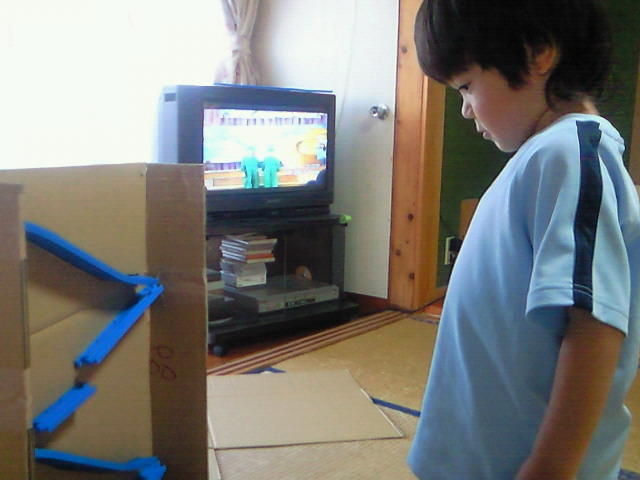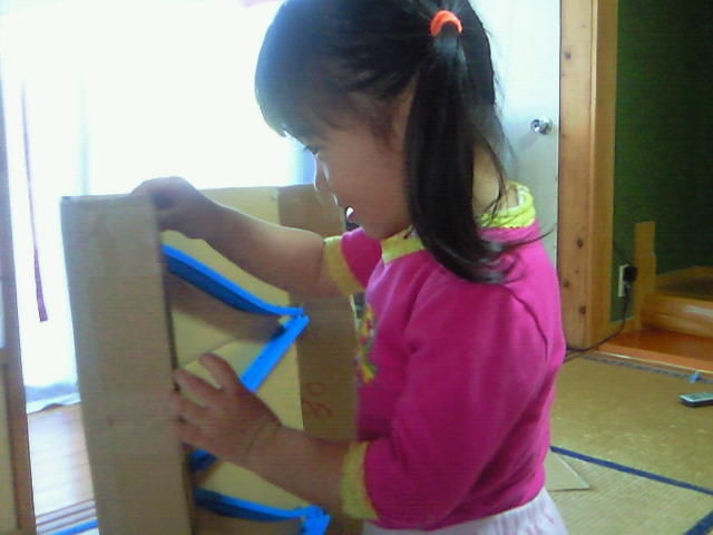 うちはおもちゃは他の家よりも豊富にある方だと思うけど(もらい物が多いけどね)、こうやって親が作ったもので遊んでくれるのはやっぱ嬉しい…。